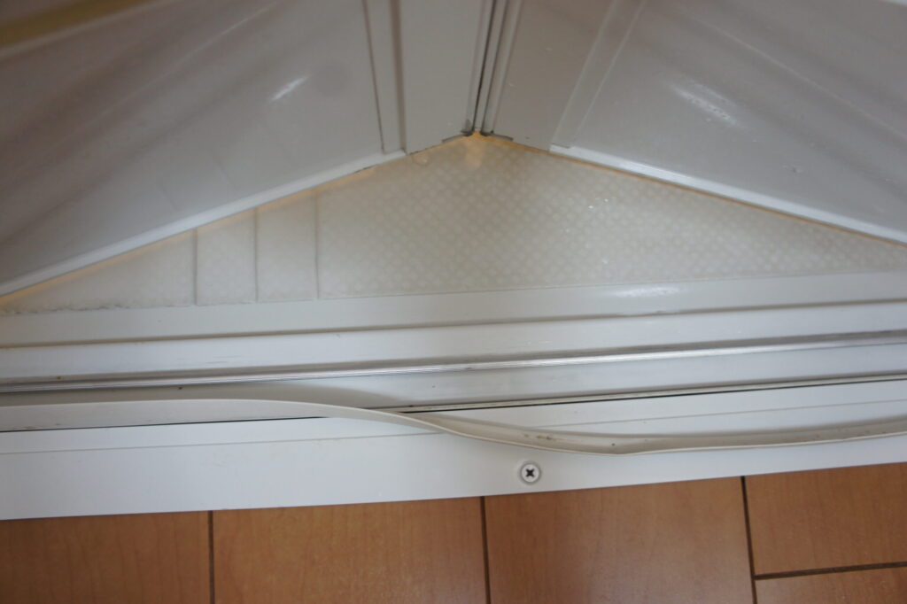 お風呂の折戸手前のゴム(下枠タイト材)が経年劣化で切れてしまったことです!